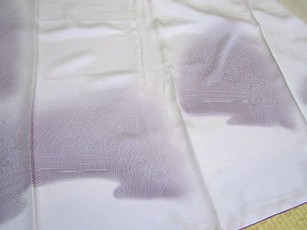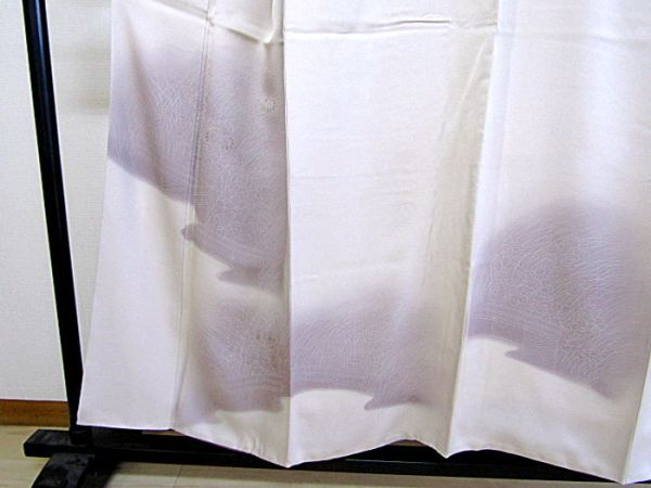 白っぽい藤色地、糸目と刺繍の附下きものです。