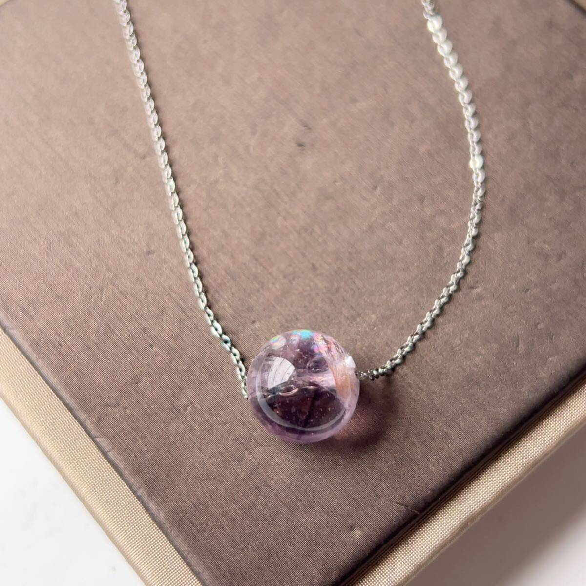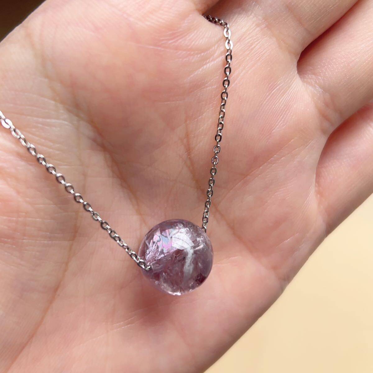 ◇紫水晶◇アメジスト◇ネックレス◇ペンダント◇虹入り◇天然石◇パワーストーン◇巾着袋付き◇プレゼントにも029P8205