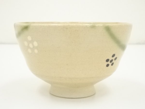 ys7029974; 古曽部焼 義崇窯造 織部写茶碗(共箱)【道】