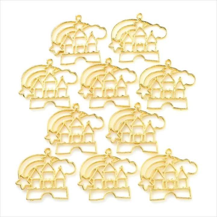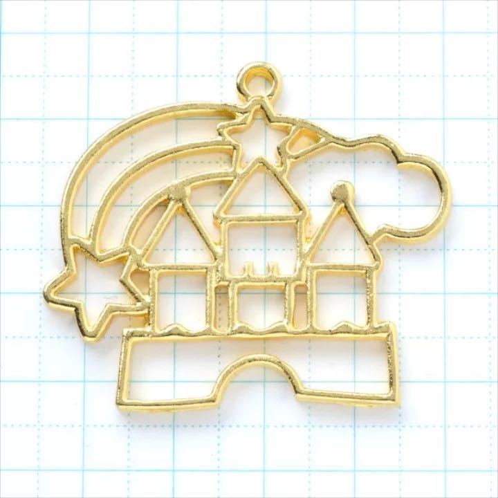 レジン空枠 tg34 ゴールド 10枚 金 キャッスル 城 メルヘン フレーム カン付き レジン アクセサリー パーツ 枠 型枠 モールド HARU雑貨qd