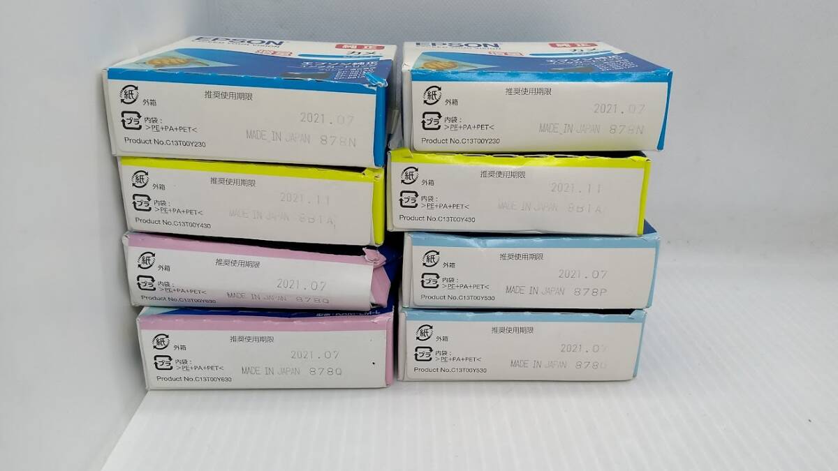 | ご覧いただきありがとうございます。 ●EPSON 純正インクカートリッジカメ KAM-LM-L/Y-L/C-L/LC-L 4色8個セット 新品パッケージ未開封ですが、外箱に凹み、擦れ傷があります。 保管品につきご容赦ください。 取付期限は, 2021.07~2021.11 です。画像でご確認ください。 ※取付期限切れにご理解いただける方ご入札お願いいたします。 ※複数在庫がある為、画像は再利用しているものがあります。 状態は同程度です。 | ||