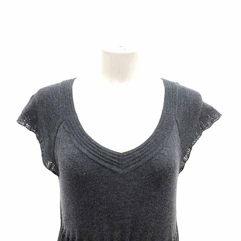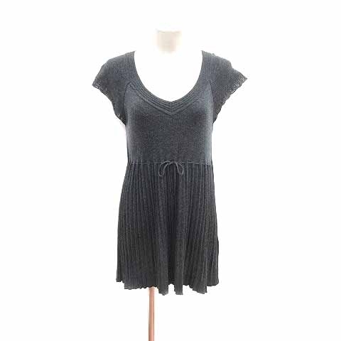 コムサデモード COMME CA DU MODE ワンピース チュニック プリーツ ニット ウエストマーク フレンチスリーブ M グレー /YK レディース