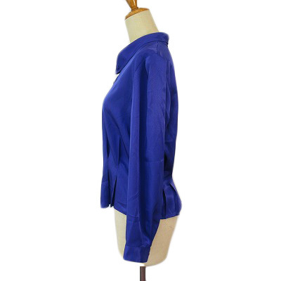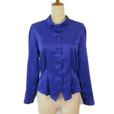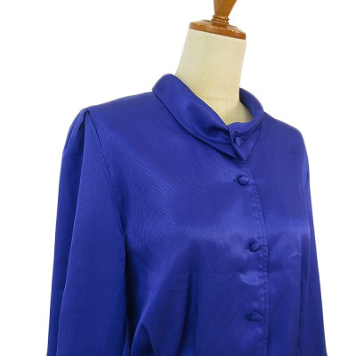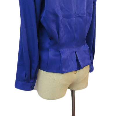 ピエールバルマン PIERRE BALMAIN ヴィンテージ ブラウス シャツ タック サテン B-82 青 ブルー レディース