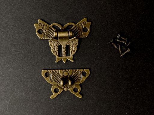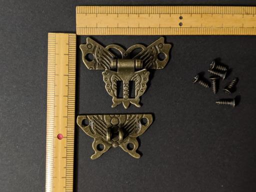 アンティークスタイル・バタフライ型 Ⅱ アンティークブロンズ 留め具 錠前用 ねじ付き