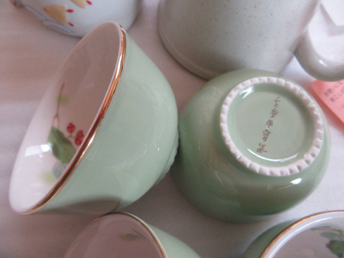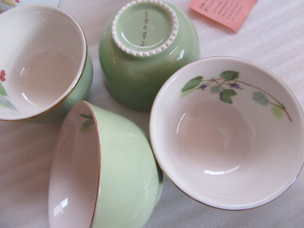 君島湯呑 径8×4.8㎝ 4客 茶こしは箱敷の底からの着色があります。おてがる配送ゆうパック60サイズの発送になります。