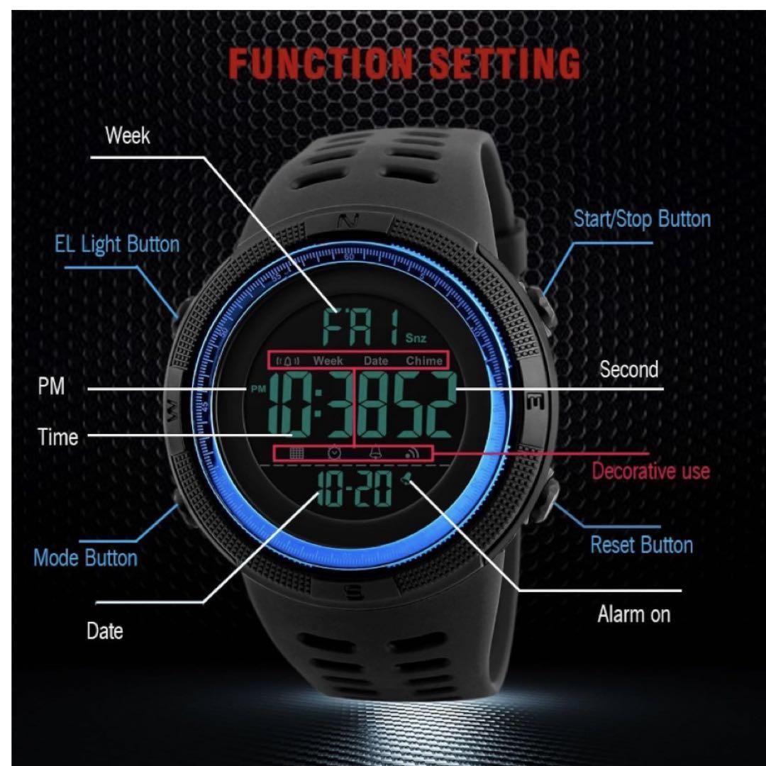 仕様:アラーム、カレンダー、ストップウォッチ、夜光 、12 24H制【防水機能】5atm防水(5気圧防水 耐水深度 : 5atm 5bar 165ft 水仕事に耐えることのできる程度の防水機能ですが 、 水の中に時計を操作するなどはご遠慮ください。)