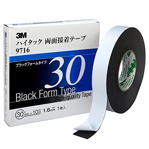 「3M ハイタック両面接着テープ 9716 30mm幅x10m 9716 30 AAD」▼4548623741864▼(商品説明)・黒色 30mm幅 9716 30 AAD・・Size:30mm幅・基材:アクリルフォーム 粘着剤:アクリル系・テープの色:黒色・テープの厚さ1.6mm説明 ●自動車メーカーが車両生産工程で使用している、両面接着テープです ●接着しにくい塗膜によくつき、安定した接着力で耐可塑剤性、耐薬品性に優れ高い品質と信頼性を得ています ●初期接着性・耐候性・耐溶剤性に優れ、長期間高い接着力を発揮します ●テープ基材が柔らかく高性能の接着剤を採用しているため、部品や簿ボデー等の曲面、凹凸部になじみ、はがれもありません ●高温・低温下においても安定した接着力が発揮されます ●基材を黒色に加工しているため、ブラックアウト部位などへの透明部品の接着に使用しても両面貼り付け部分が目立ちません ●用途:サイドモールの接着、バンパーモール・バンパープロテクターの接着、透明サイドバイザーの接着、各種内外装部品やアクセサリー等の接着