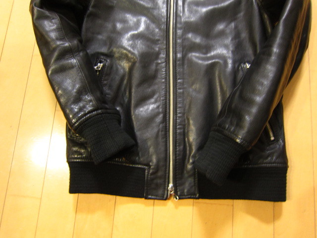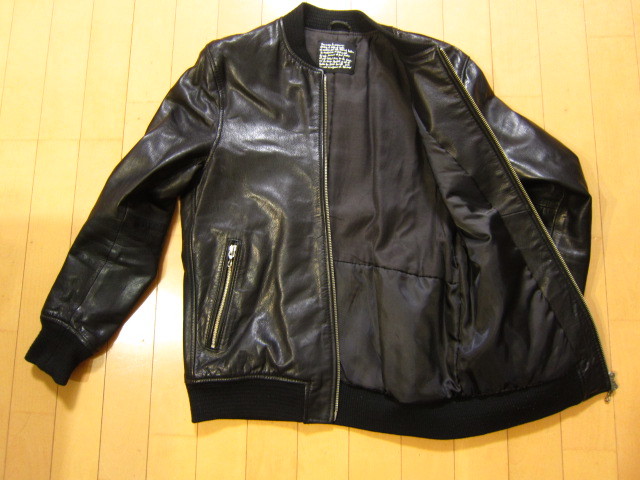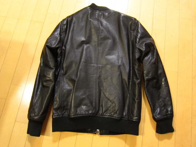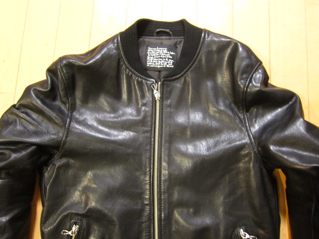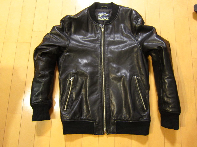 ナノユニバース MA-1タイプ レザージャケットです。かっこいいです!やぎ革(ゴートスキン)です。サイズ表記はSで、SまたはM相当です。色はブラックです。実寸より判断下さい。肩幅約41.5cm、袖丈約60cm、着丈約60.5cm、身幅約48cmです。使用回数も少なく、きれいな状態のものだと思いますが、中古品に付き、神経質な方は入札をお控えください。ノークレーム ・ノーリターンでお願いします。発送はヤフネコパックを予定しています。
