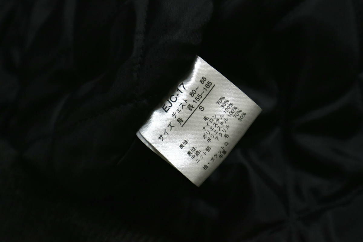 ・裏地キルティングの中綿入りで作り自体は気持ち厚手、晩秋から冬、春先までと長く着用頂けます。肩はパッドなし、内ポケットは左胸の内側に1つです。リブもやや厚手のしっかりとした作りで安心です。