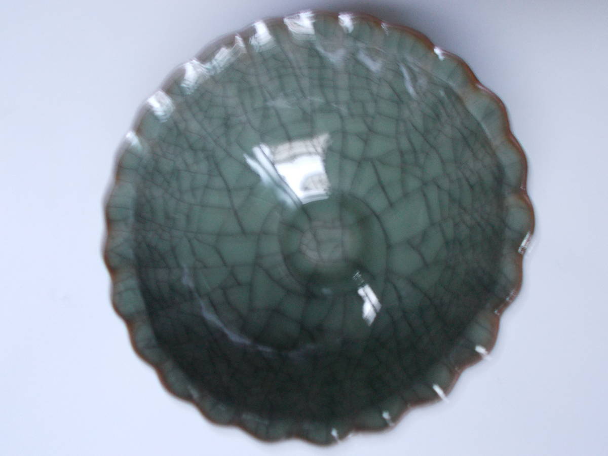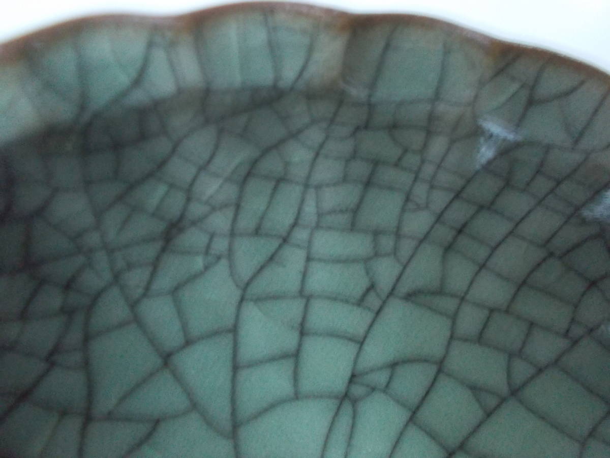 丹精波打ち縁取り、ガラス状釉薬ヒビ模様、画像でご確認下さい。