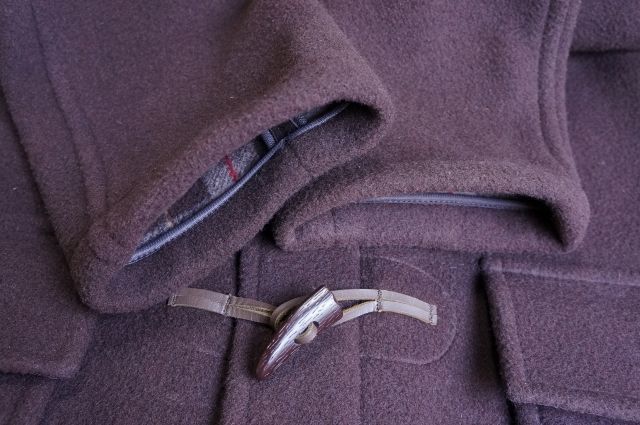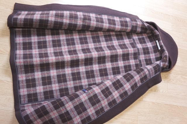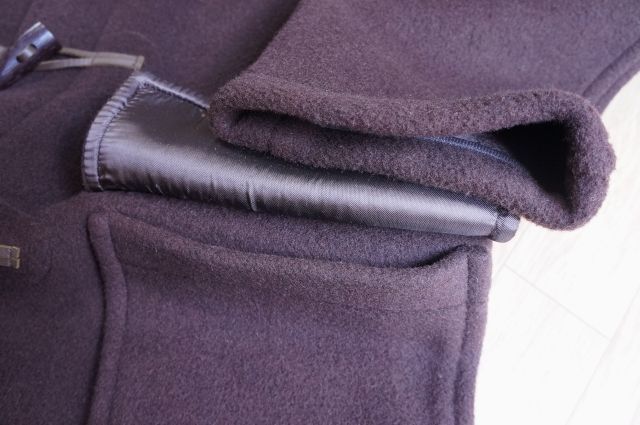 張り感の有るウールメルトン生地、裏のチェック柄がいい感じです。