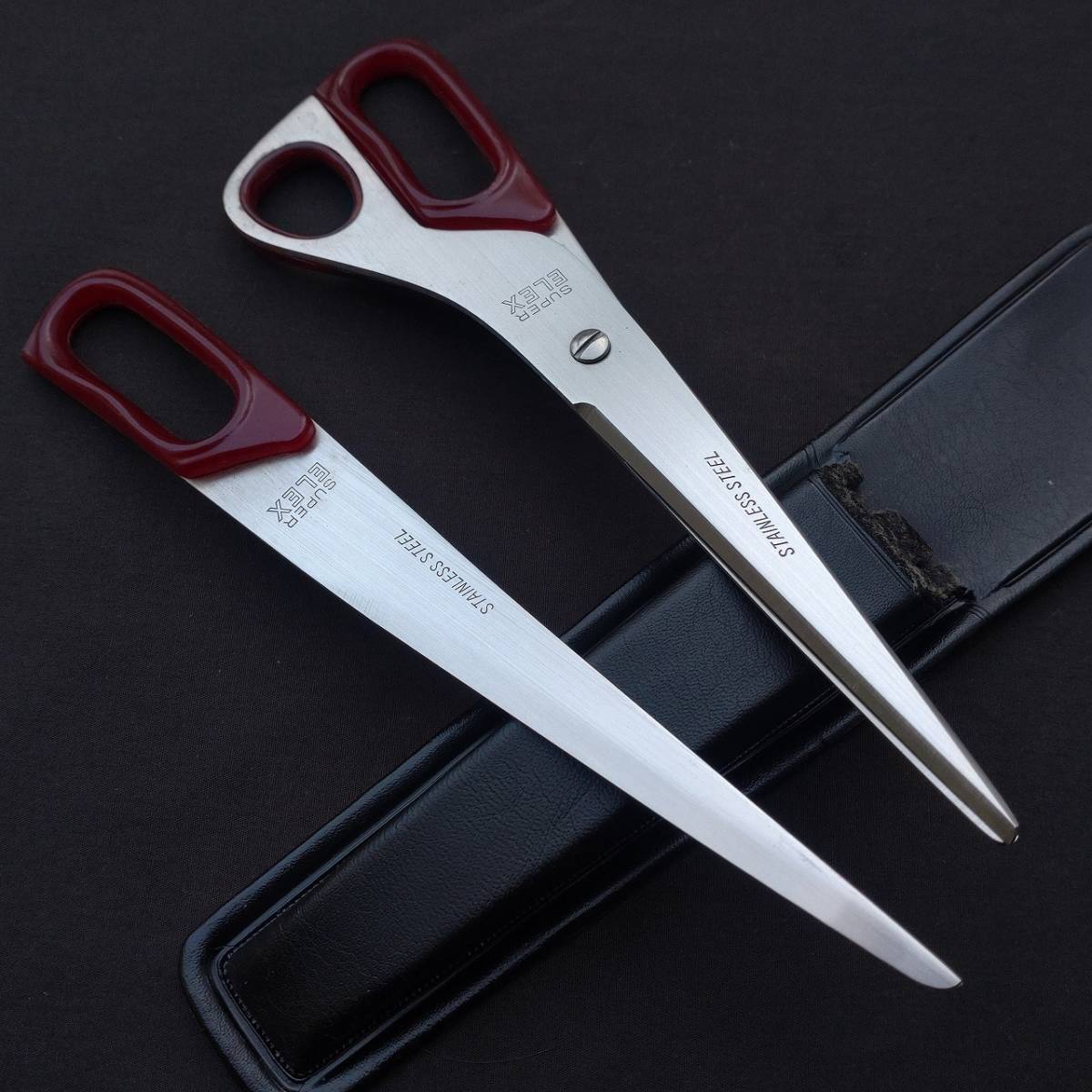 ペーパーナイフ ハサミ セット 全長約200㎜ SUPER ELEX STAINLESS STEEL ケース付き 紙ナイフ 鋏 はさみ デスクセット 文房具 【4722】