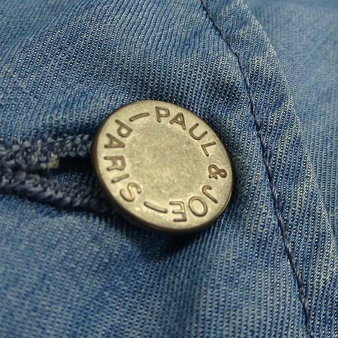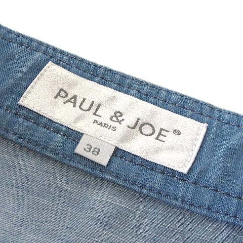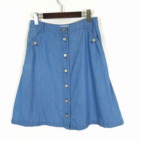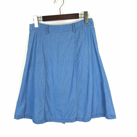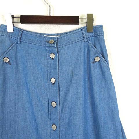 ポール&ジョー PAUL&JOE スカート シャンブレー フレア ラップスカート フロント ロゴボタン 落ち感 ひざ丈 M 38 青 ブルー レディース