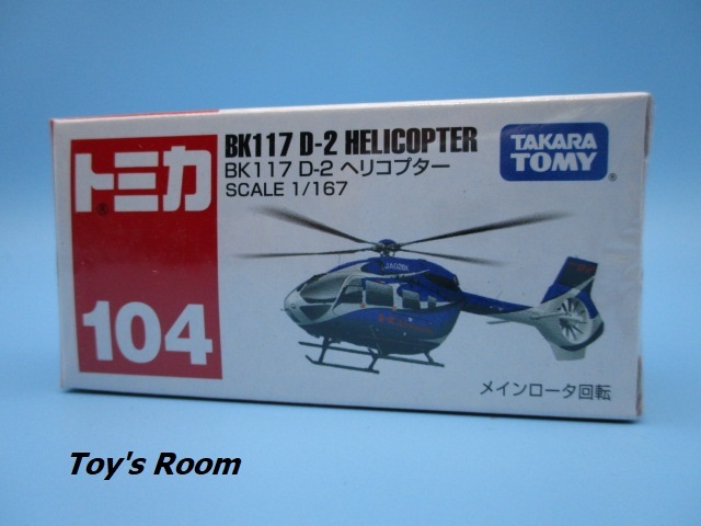 トミカ No.104 BK117 D-2 ヘリコプター 新品未開封ですが、箱の多少の傷みや些細な初期傷、テープの2度張り等、パッケージの状態を気にする方のご落札はご遠慮ください。 | ||