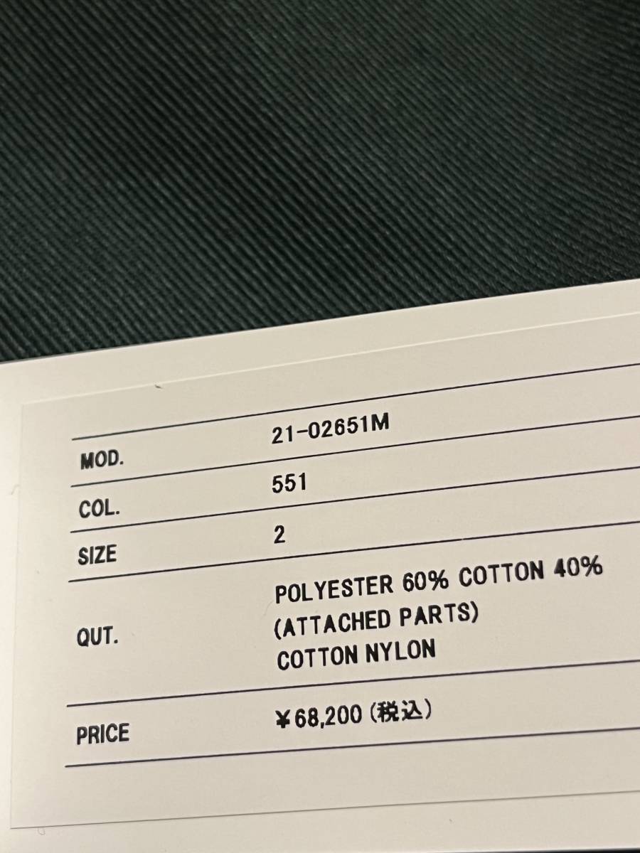 サイズ:2 (肩幅:47.5㎝、身幅65㎝、着丈74.5㎝)