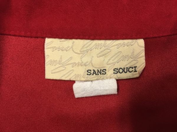 USA製 SANS SOUCI サンスーシ オールド レトロ クラシカル エレガント 90s 古着 テーラードジャケット レディース スパンデックス100% S 赤 です。