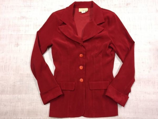 USA製 SANS SOUCI サンスーシ オールド レトロ クラシカル エレガント 90s 古着 テーラードジャケット レディース スパンデックス100% S 赤