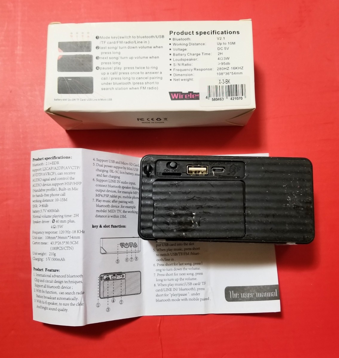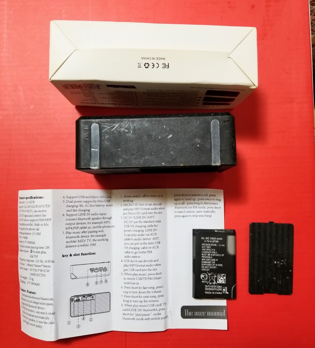 経年のベタつきやスレ、キズ等あります。すべての機能は試していませんがコンパクトなブルートゥーススピーカーとして持ち運びも便利でした。