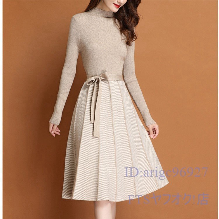 V387☆新品品格女子 エレガント カシミヤ混 バックプリーツワンピース ベージュ