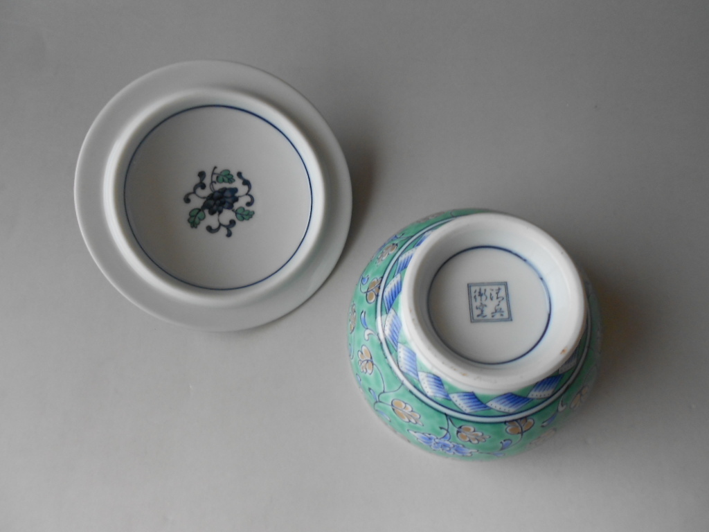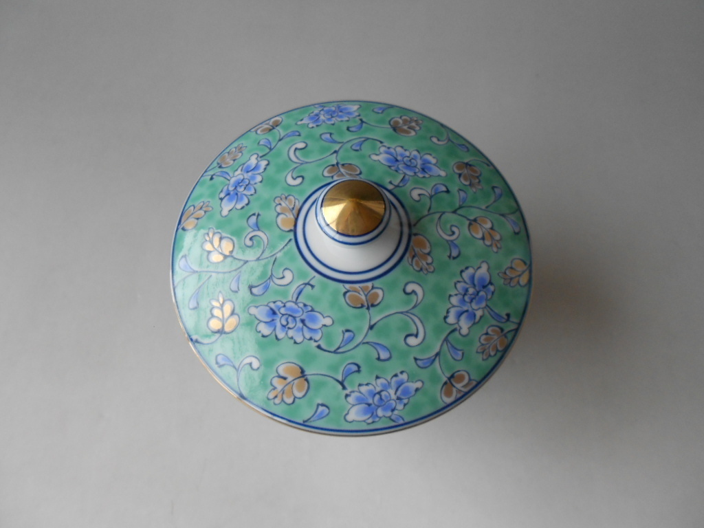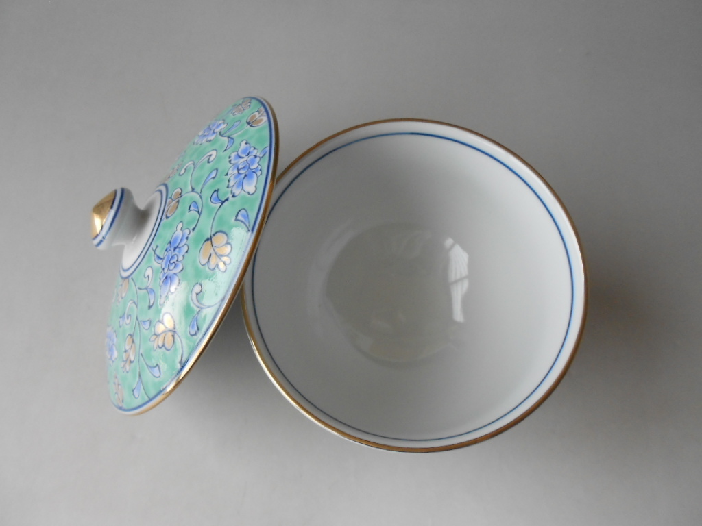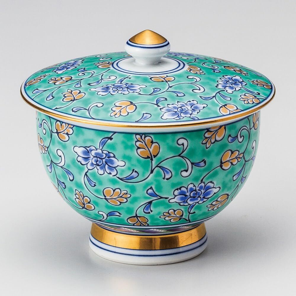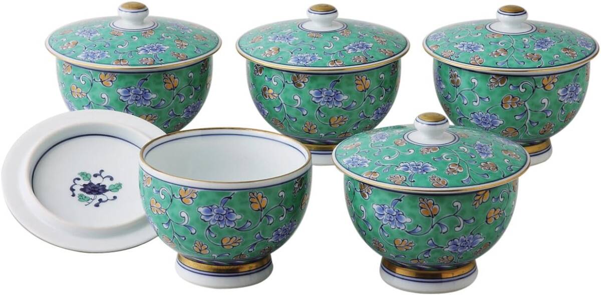 KU有田焼! ☆グリーン濃唐草蓋付汲出5個セット☆ 346-1-697 新品 湯呑 煎茶 茶器