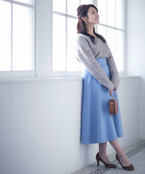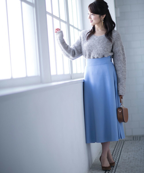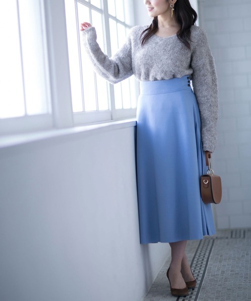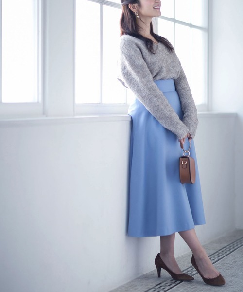 ベーシックなデザインなので合わせるボトムは選ばず、スカートとはもちろん、デニムと合わせたカジュアルなスタイルもおすすめです。
