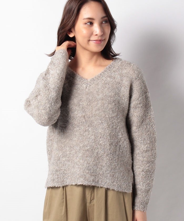 新品 NANO UNIVERSE ナノユニバース ブークレVネックプルオーバー ニット セーター モコモコ ベージュ