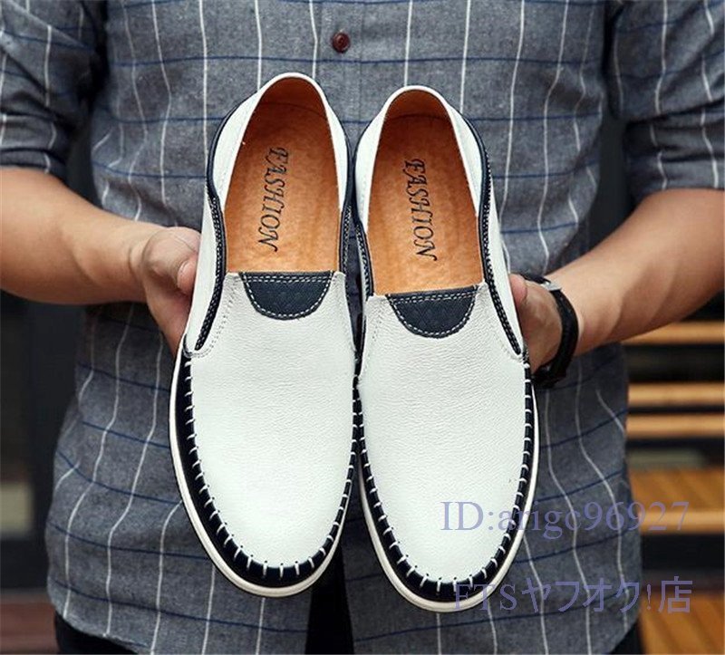 U366☆新品ローファー スリッポン スニーカー メンズ 紳士靴 ドライビングシューズ シンプル 白 25.0cm