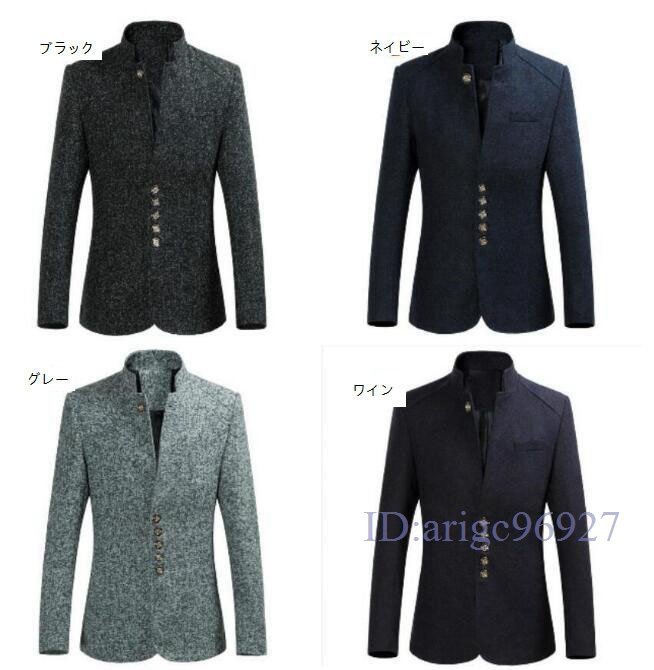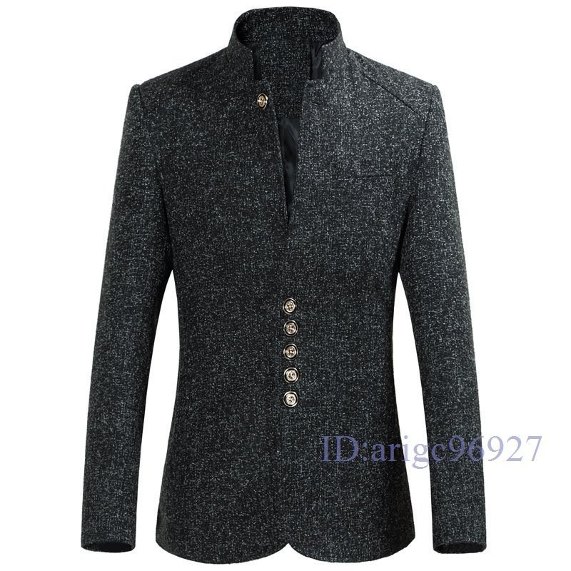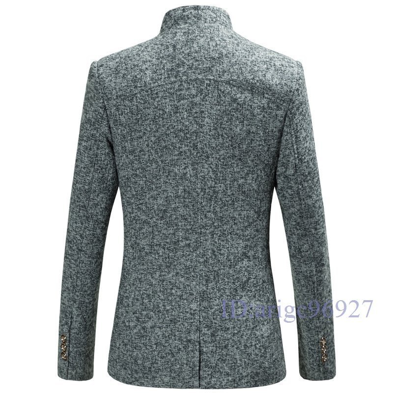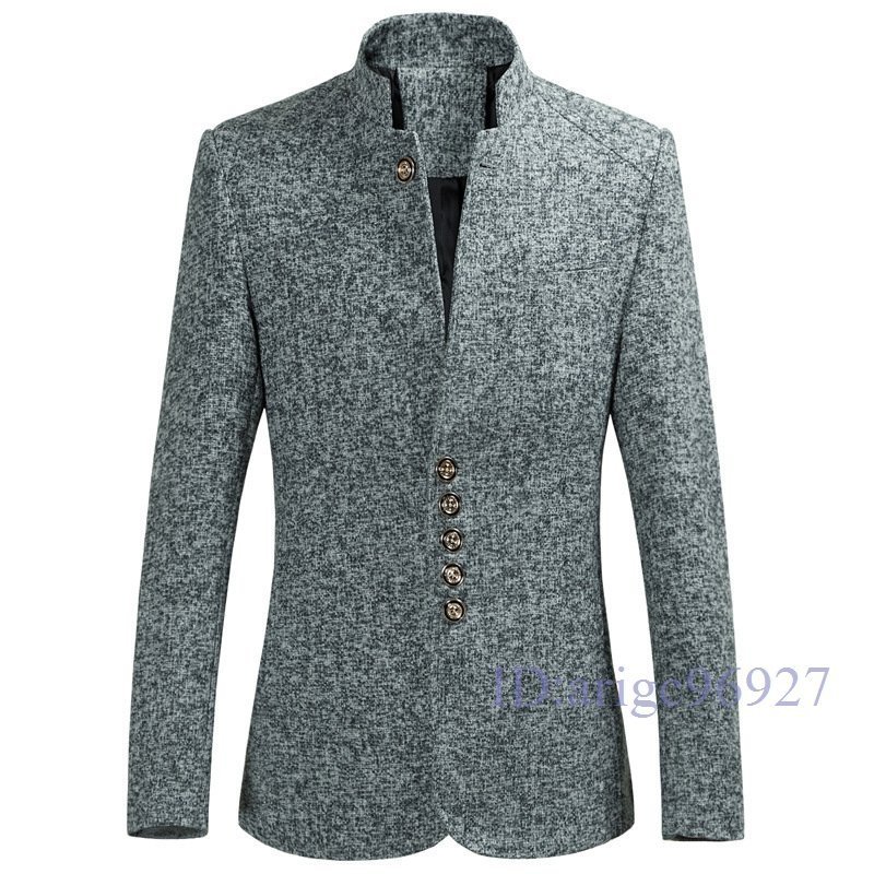 T326☆新品メンズテーラードジャケットビジネススーツブレザーシンプル立て襟カジュアルスーツアウター紳士通勤大きいサイズグレーM~6XL