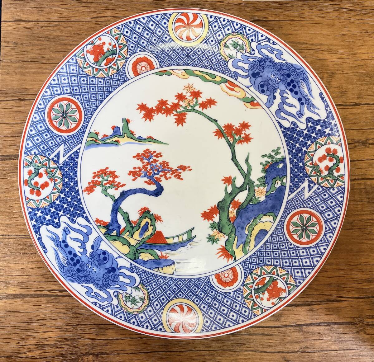 【有田焼 麒麟 大皿】紅葉/飾皿/直径約36㎝/風景/インテリア/M62-325