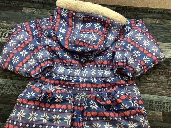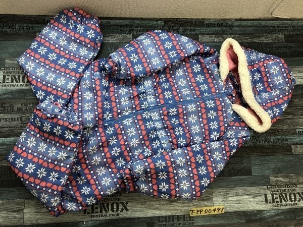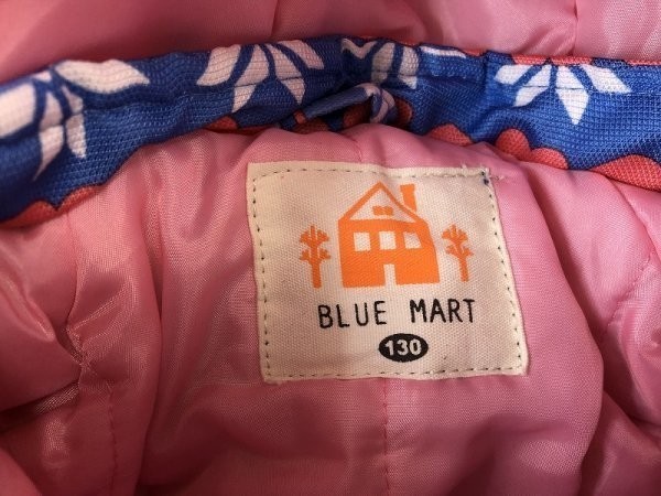 BLUE MART キッズ フード付き 中綿 防寒 ジップ オールインワン 130 青×薄い朱色×白 です。
