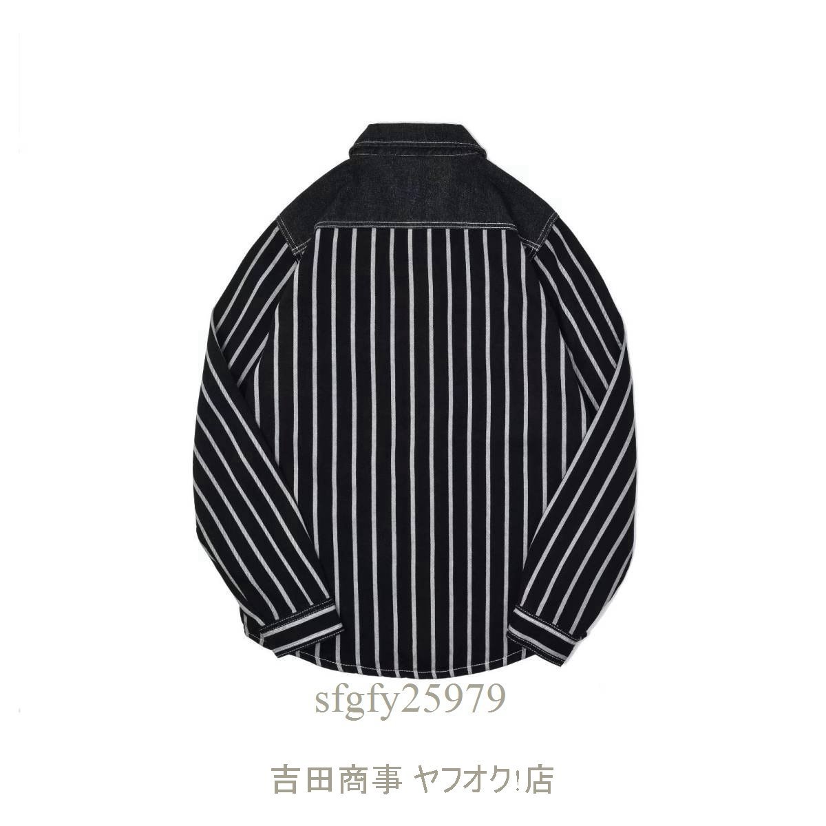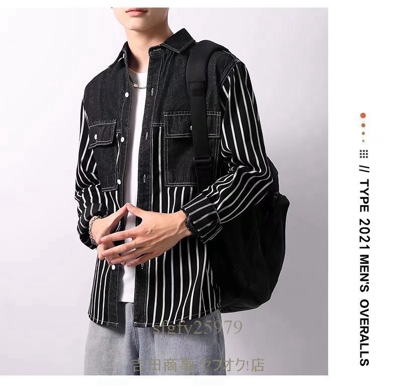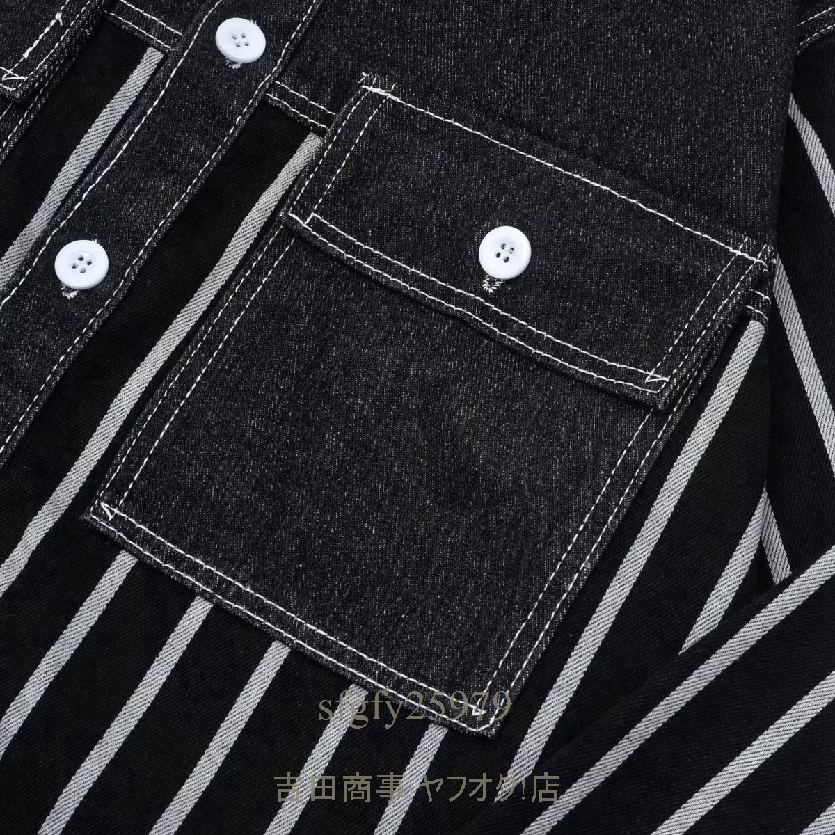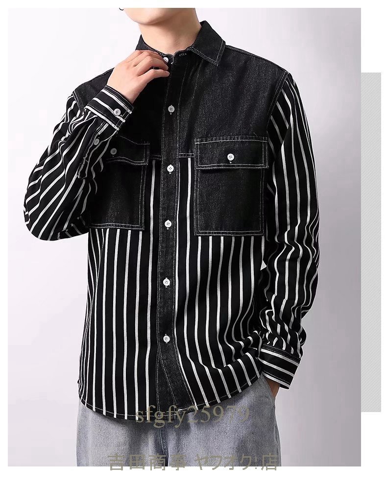 A6491新品デニムジャケット メンズ ジージャン ストライプ 折り襟 シャツ 紳士 トップス ウォッシュ カジュアル 春夏 2色選ぶ