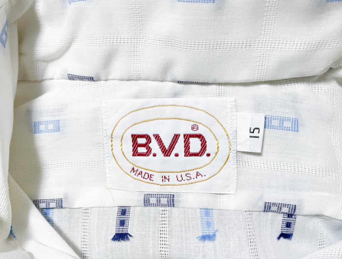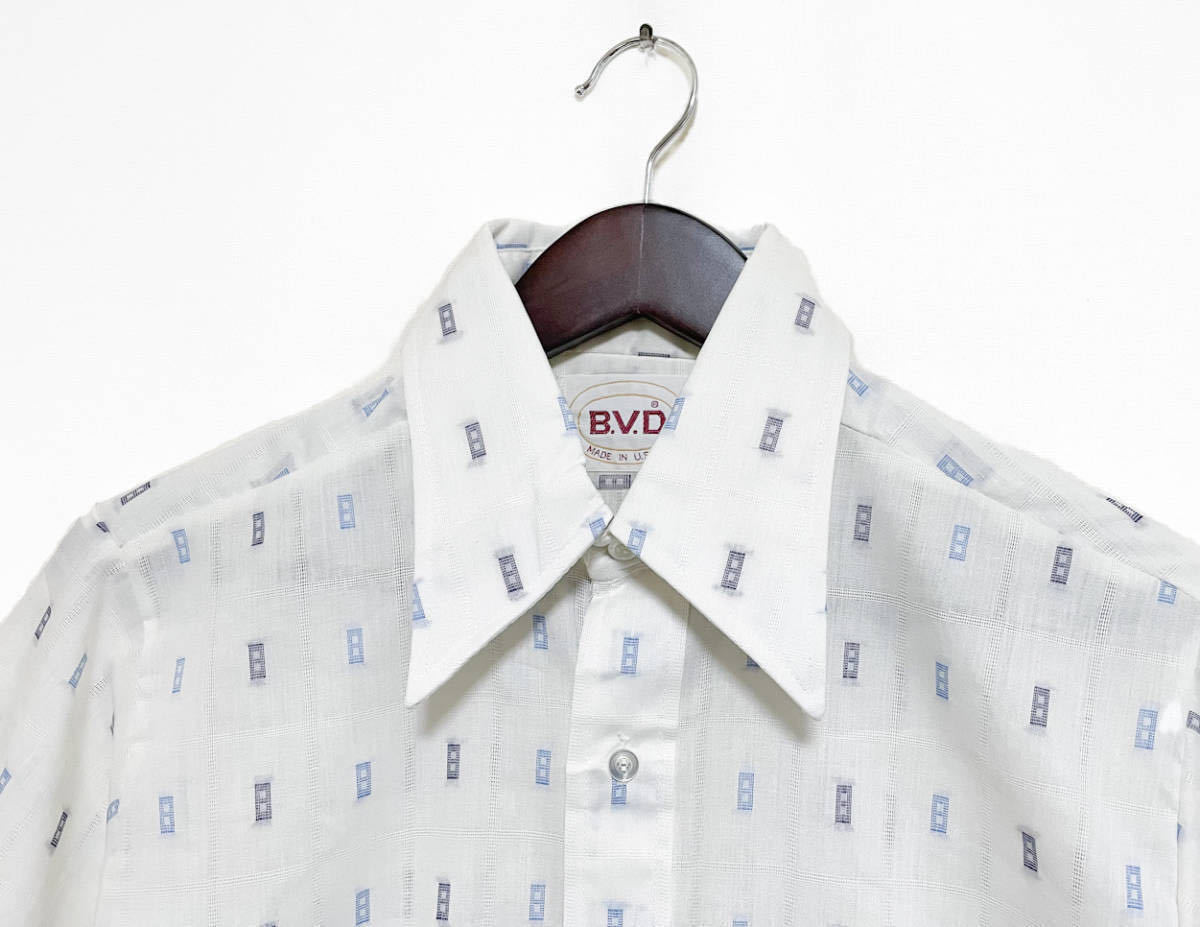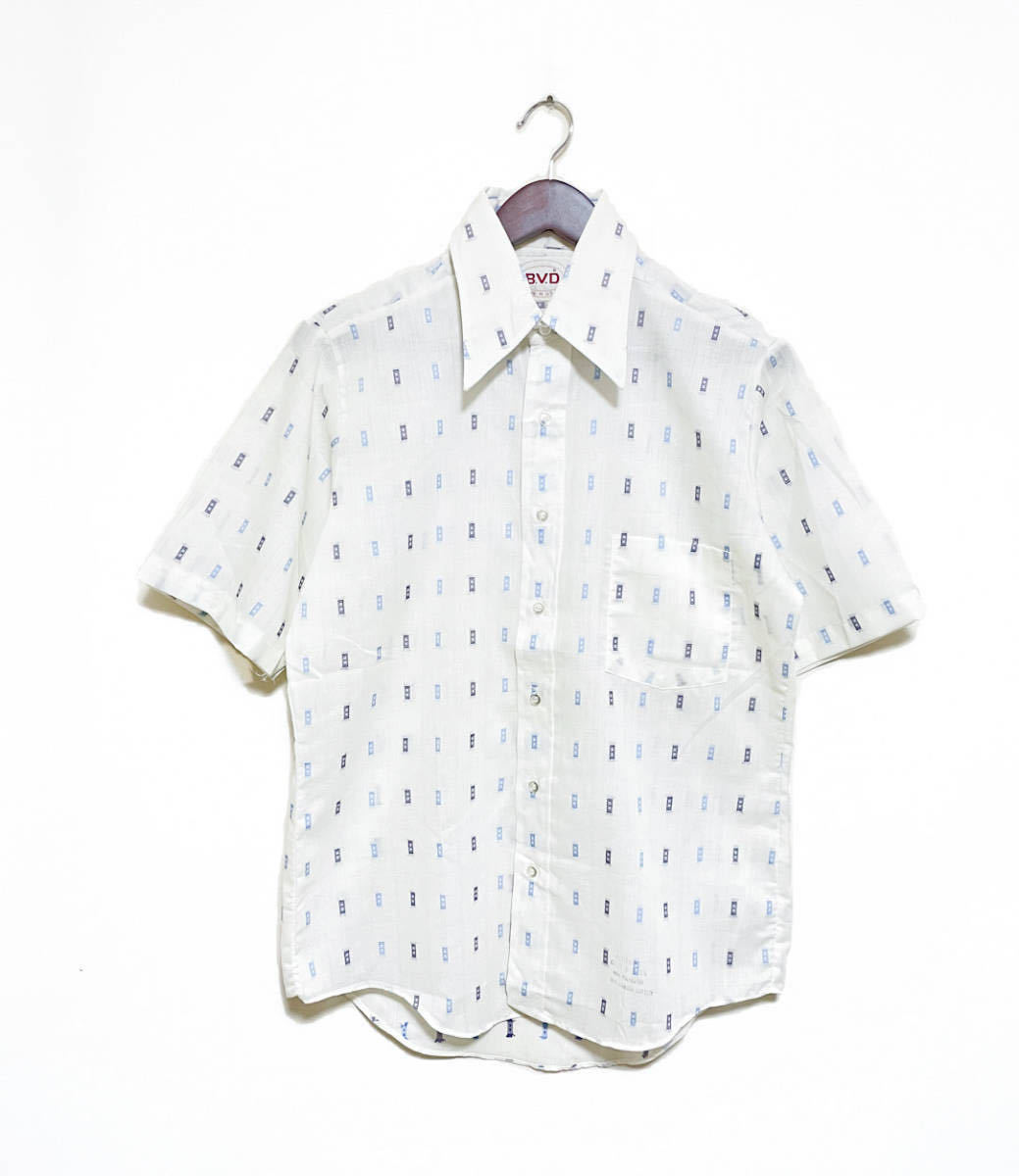 貴重 デッドストック 70s B.V.D 総柄 半袖 シャツ 15 ポリシャツ 高級 コーマ綿使用