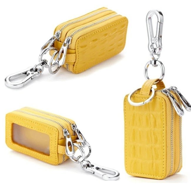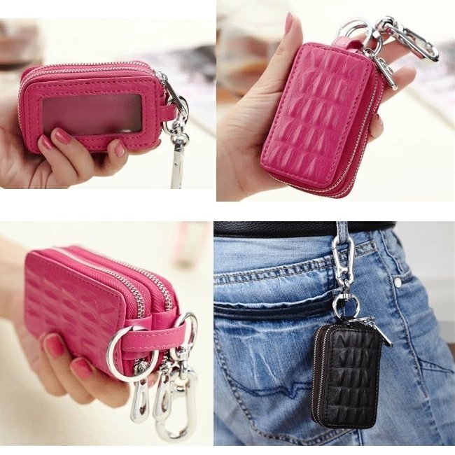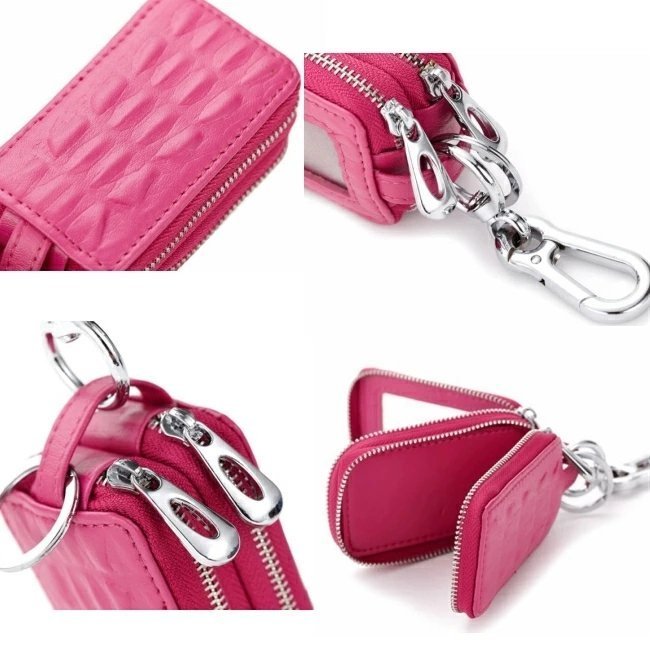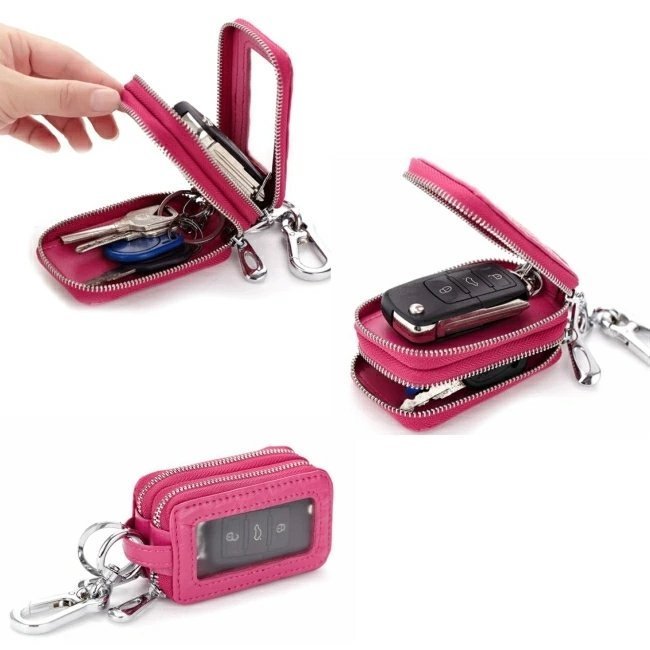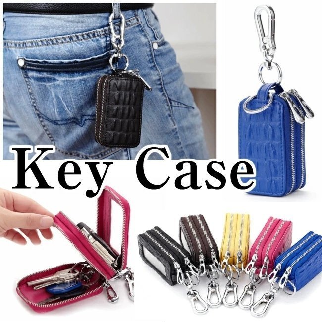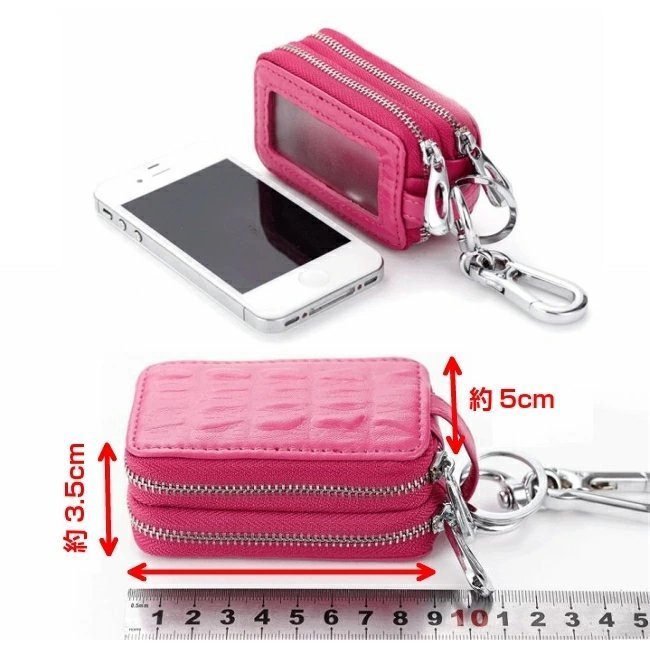 キーケース 本革 容量たっぷり Wファスナー レザー スマートキー キーケース メンズ レディース 入れたままでリモコン操作かんたんgyma043