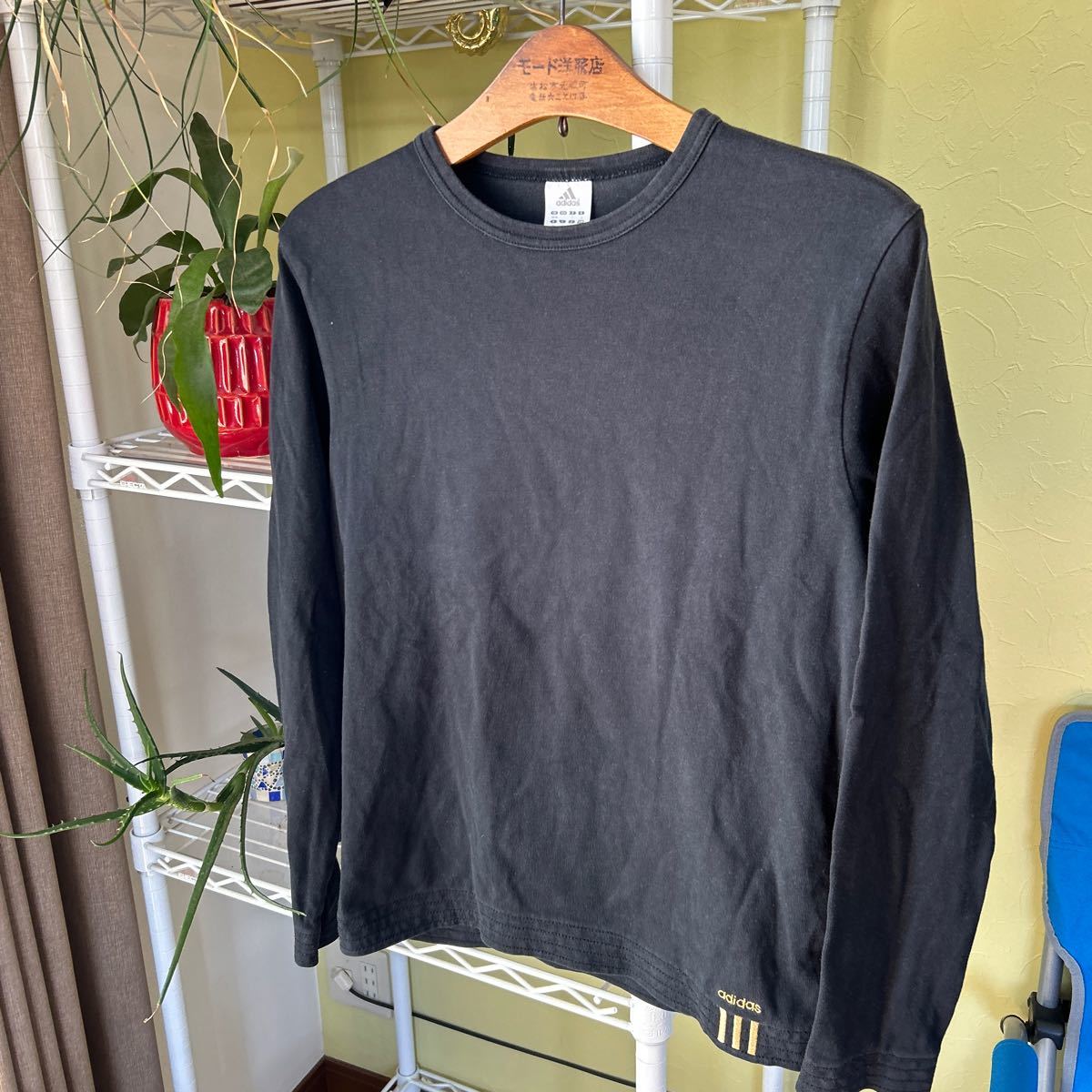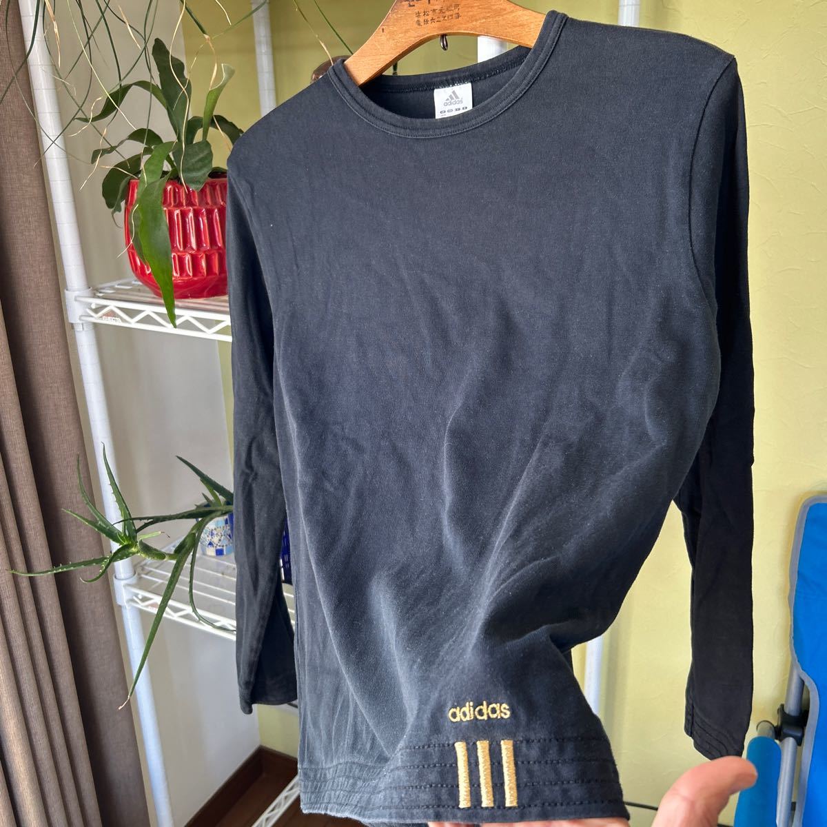 袖丈53(脇下縫目〜袖先端)。多少の誤差はお許しください。多少使用感ありますが生地は張りがあり良い雰囲気です。しっかりした綿100 カットソー 金ロゴ刺繍 できる限りダメージは説明させていただきますが、こちらが気づかない程度のわずかなしみ、よごれ、