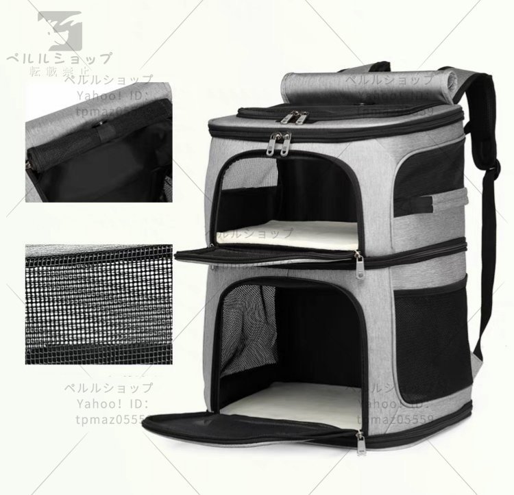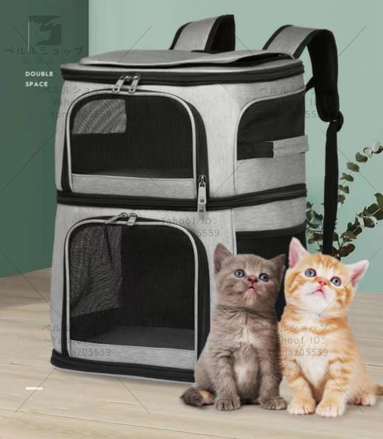 ペットキャリーバッグ 小型犬/猫/小動物適用 キャリーバッグ リュック 旅行/通院/散 通気性 安定性 二段式 耐荷重8.5kg