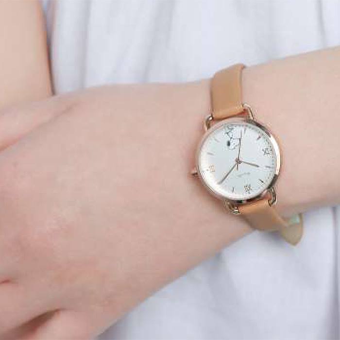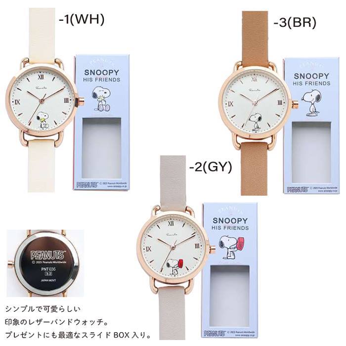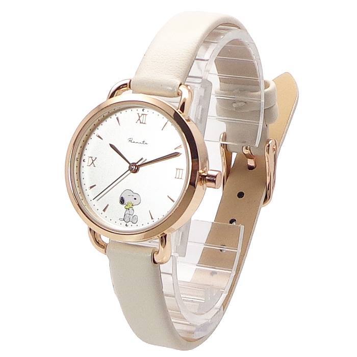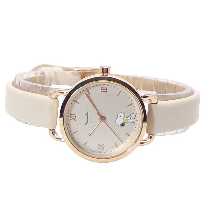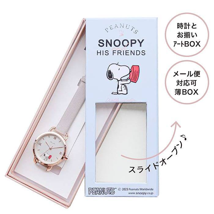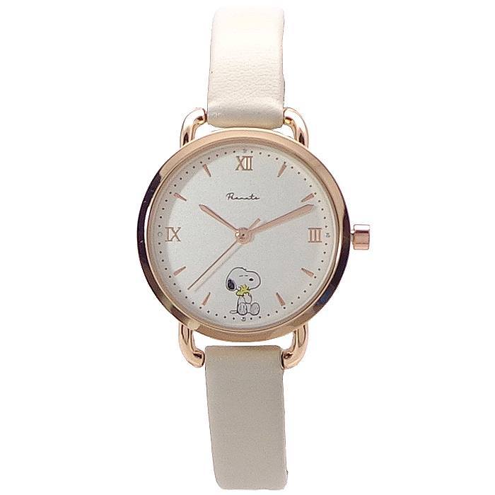 | みんなの人気者!スヌーピーのウォッチです!! 6時にワンポイントスヌーピーが描かれた文字盤に、スリムな印象のレザーベルトウォッチです♪ シンプルで可愛らしいデザインとなっています♪ シャンパンゴールード系文字盤にピンクゴールドのインデックス・針が映え、高級感を演出しています♪ スライド式薄型のBOX入りです。プレゼントにもオススメです♪ |
