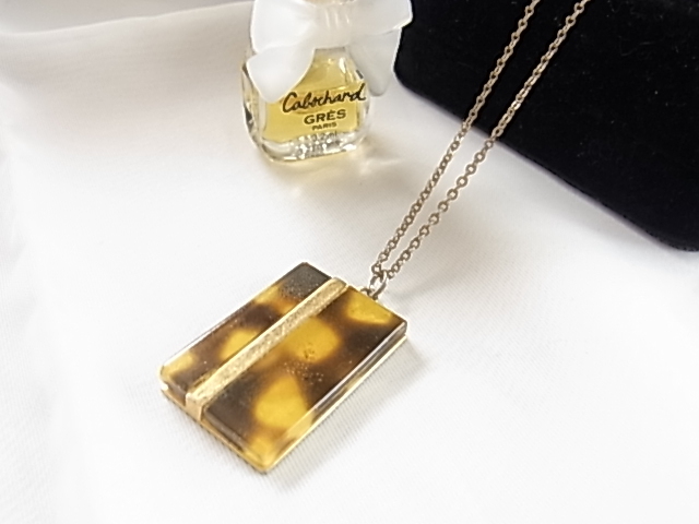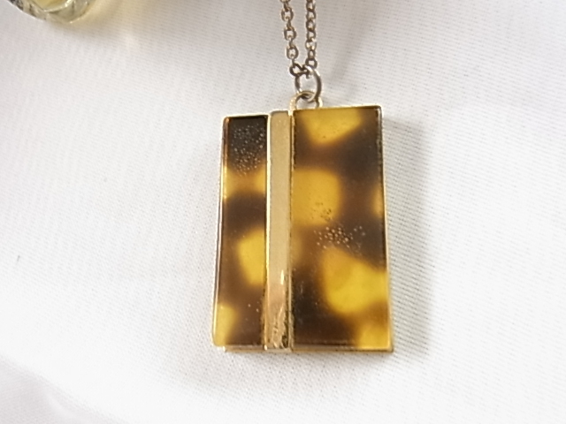 ビンテージ/ヴィンテージ べっこう調のカラー模様 長四角のプレートデザイン 金色との相性が綺麗 個性的 レトロ ネックレス▼
