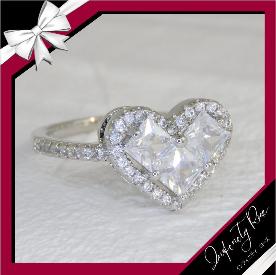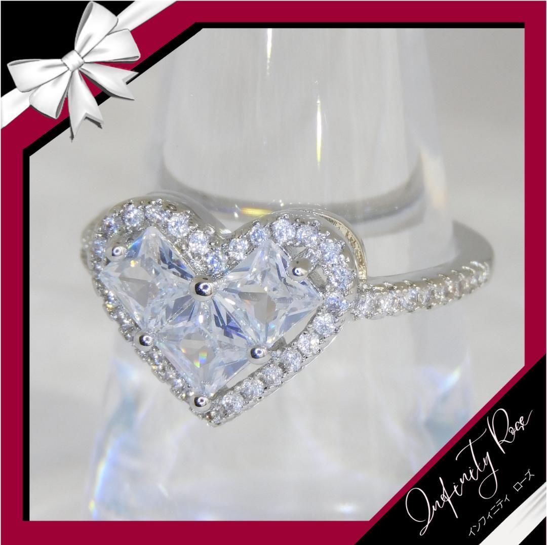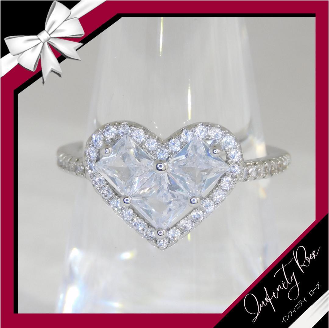 (R060S)14号 こだわったキャンディーハートクリスタルリング 高価爪留指輪