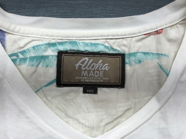 ALOHA MADE レディース ボタニカル柄 胸ポケット切替え 半袖Tシャツ FREE 白 です。