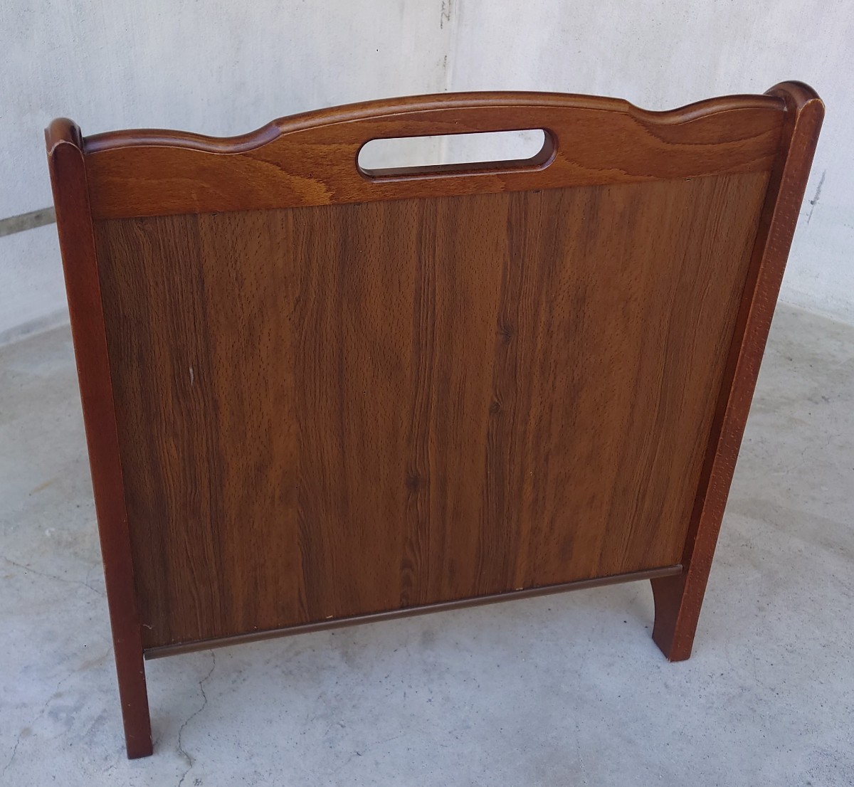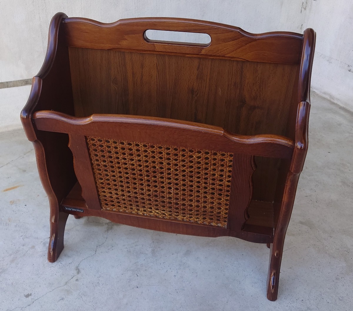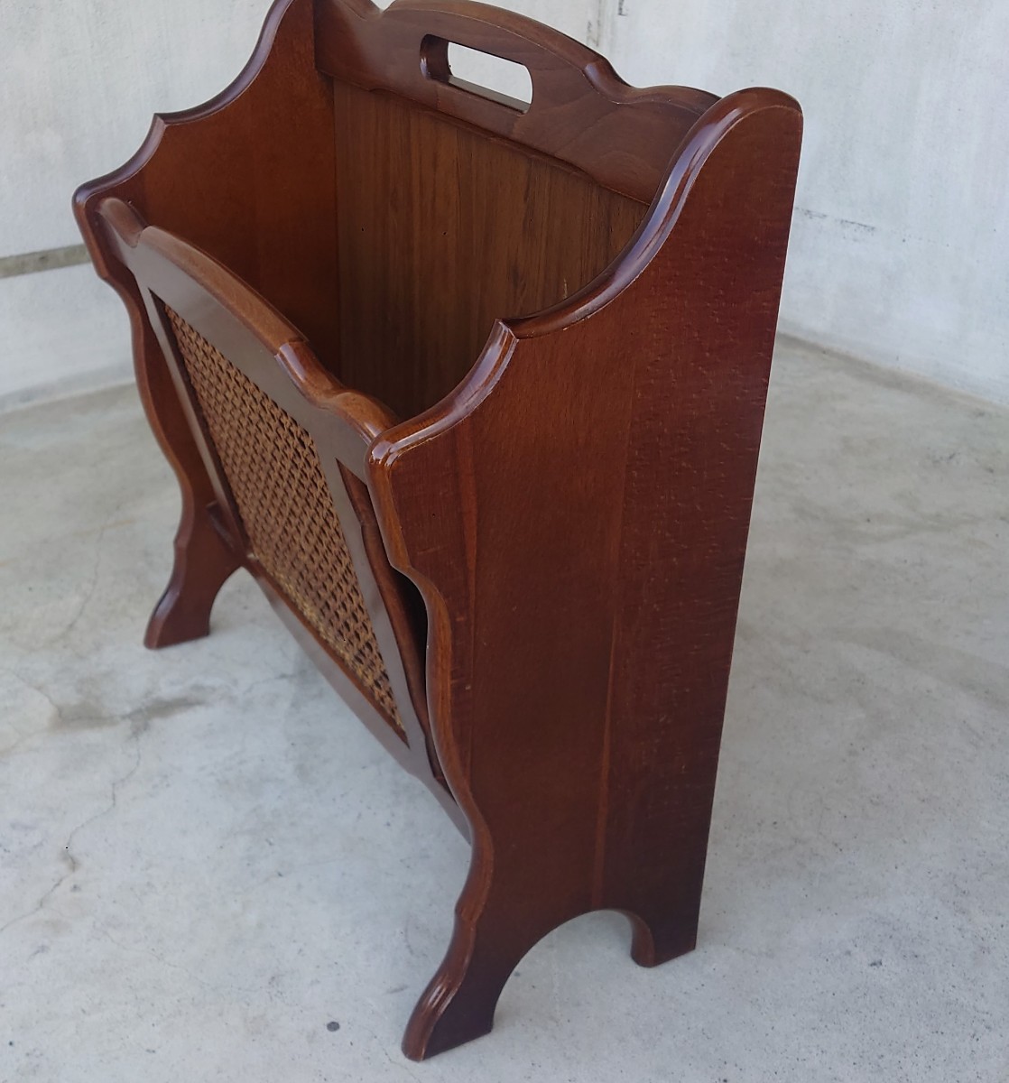 木目が美しくアメリカンカントリーの素敵なマガジンラック。手軽で場所取らずのマルチな小物家具です。