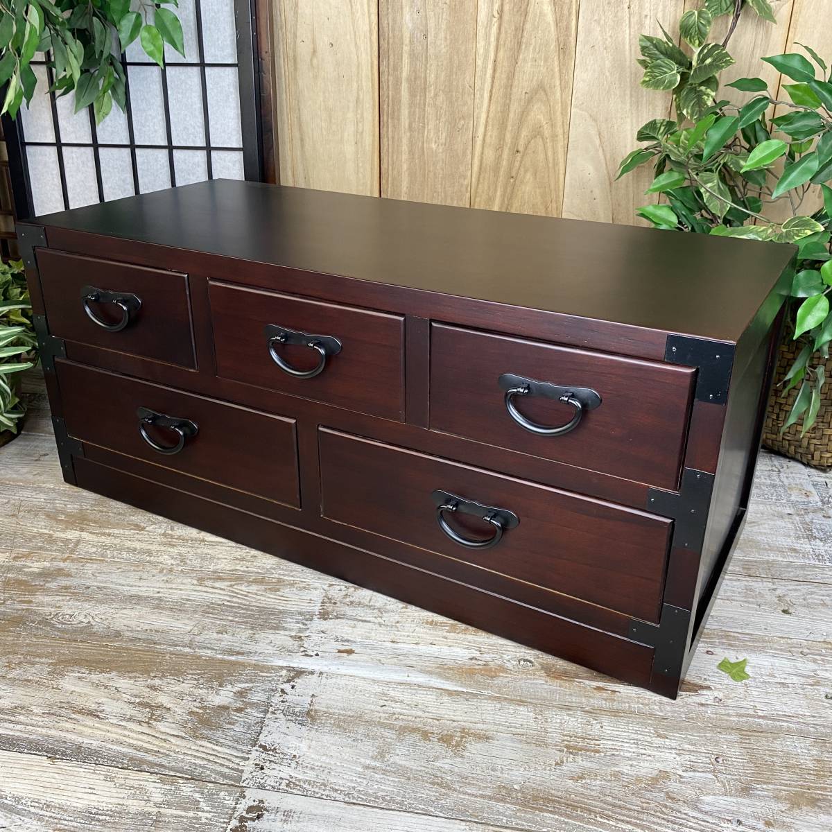 ◆◇商品詳細◇◆ 民芸家具和タンス多引き出し 民芸調の落ち着きのある素敵な和箪笥です。どこか懐かしい和の温かみがあるお品。材質は桐材を使用しているため手触りが柔らかく、調湿性・耐火性・防虫性に優れています。変形などもなく長年愛用していただけます。桐材なので軽くて持ち運び、移動など楽々です。古き良き時代を思い出させるデザインで和室、アジアンインテリアにぴったりです。黒塗りの金具が高級感があり、お部屋に置くだけで存在感抜群!お色は飽きのこない濃い目のブラウンで重厚感を演出しています!人気商品が今だけこの価格!他では買えない民芸商品をぜひこの機会に。 【商品状態説明】 小キズあり、まずまずの美品。 完成品になります。 ※こちらの商品は、現品画像ではありません。在庫の中から丁寧に検品後、発送いたします。 【サイズ】 横幅:80㎝ 奥行:35㎝ 高さ:34.5㎝ 引き出し内寸小:21㎝×30㎝×9㎝ 引き出し内寸大:33㎝×30㎝×9㎝ 【素材】 桐材 【カラー】 ブラウン 【参考価格】 ¥18,000 | ◆◇発送方法◇◆ ●送料は基本無料ですが、沖縄・離島などにお住まいの方はご負担ください。 (沖縄・離島の方はメールにてご連絡いただければ、送料をお知らせいたします。) ●ヤマト運輸・佐川急便・第一貨物のいずれかにて配送いたします。 (運送会社の指定はできません。ご了承ください。) ●日時・時間指定のある方や、お問い合わせ(追跡)番号をご希望の方は取引連絡の際にお知らせください。 | |