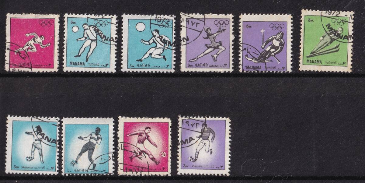 バーレーン マナーマ/外国切手10枚セット/オリンピック スポーツ スキー サッカー バレー スケート/MANAMA