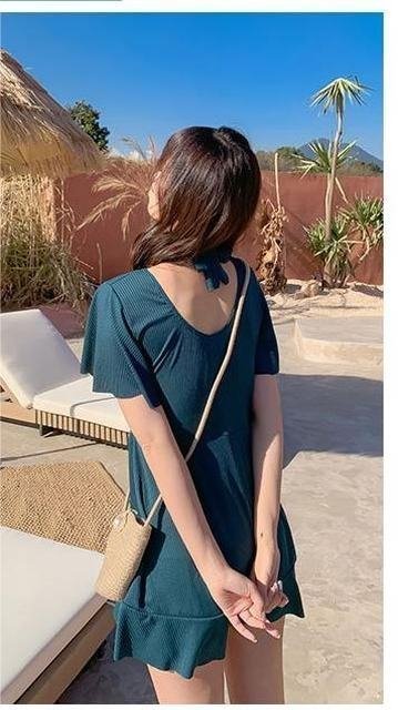 ワンピース水着 ママ 大きいサイズ 体型カバー レディース スイムウェア ぽっちゃり グリーン L LB144