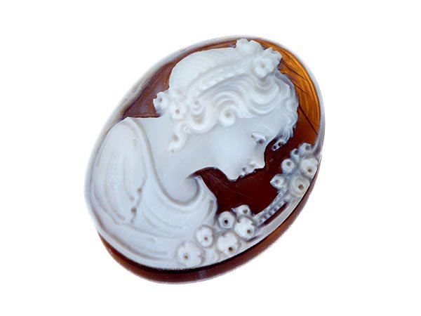 おぼろげな少女の横顔の彫刻が魅力的なシェルカメオルースを特別大放出致します!