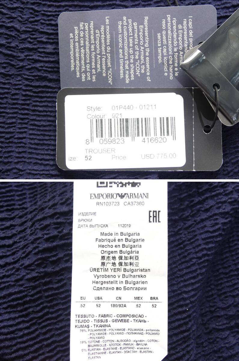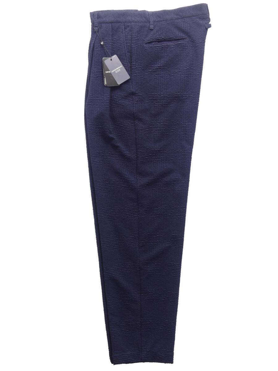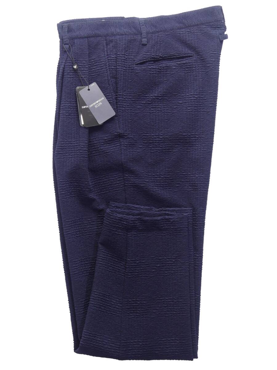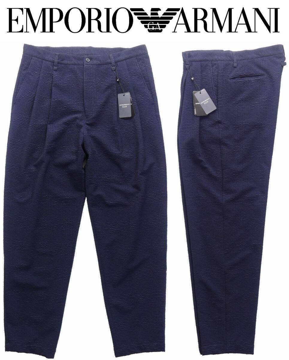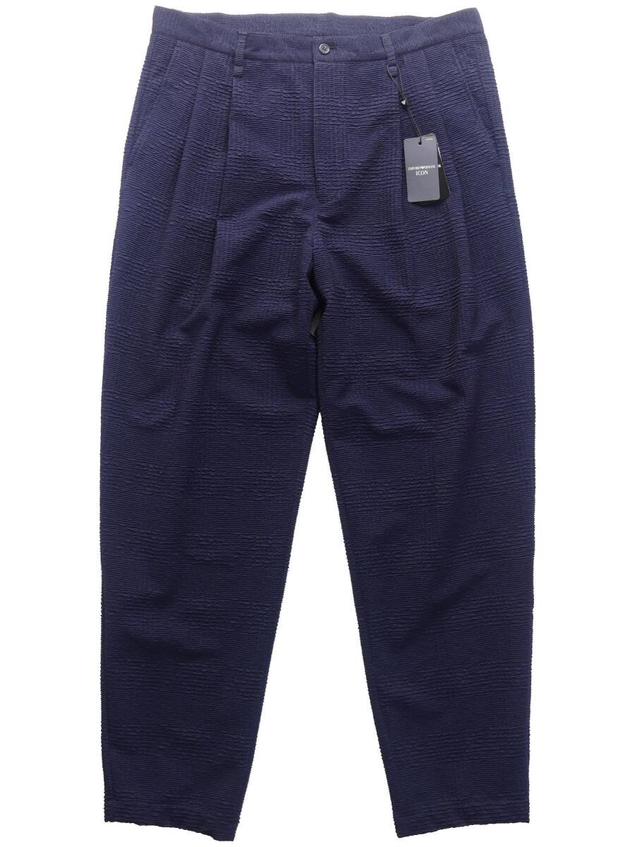 通年物126,000円新品EMPORIOARMANIアルマーニ★タイムレスICONコレクション凹凸ワッフル濃紺テーパードパンツ【44=28インチ】