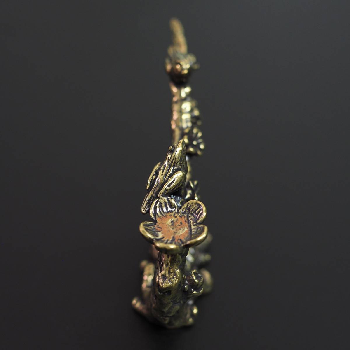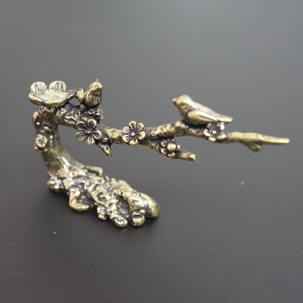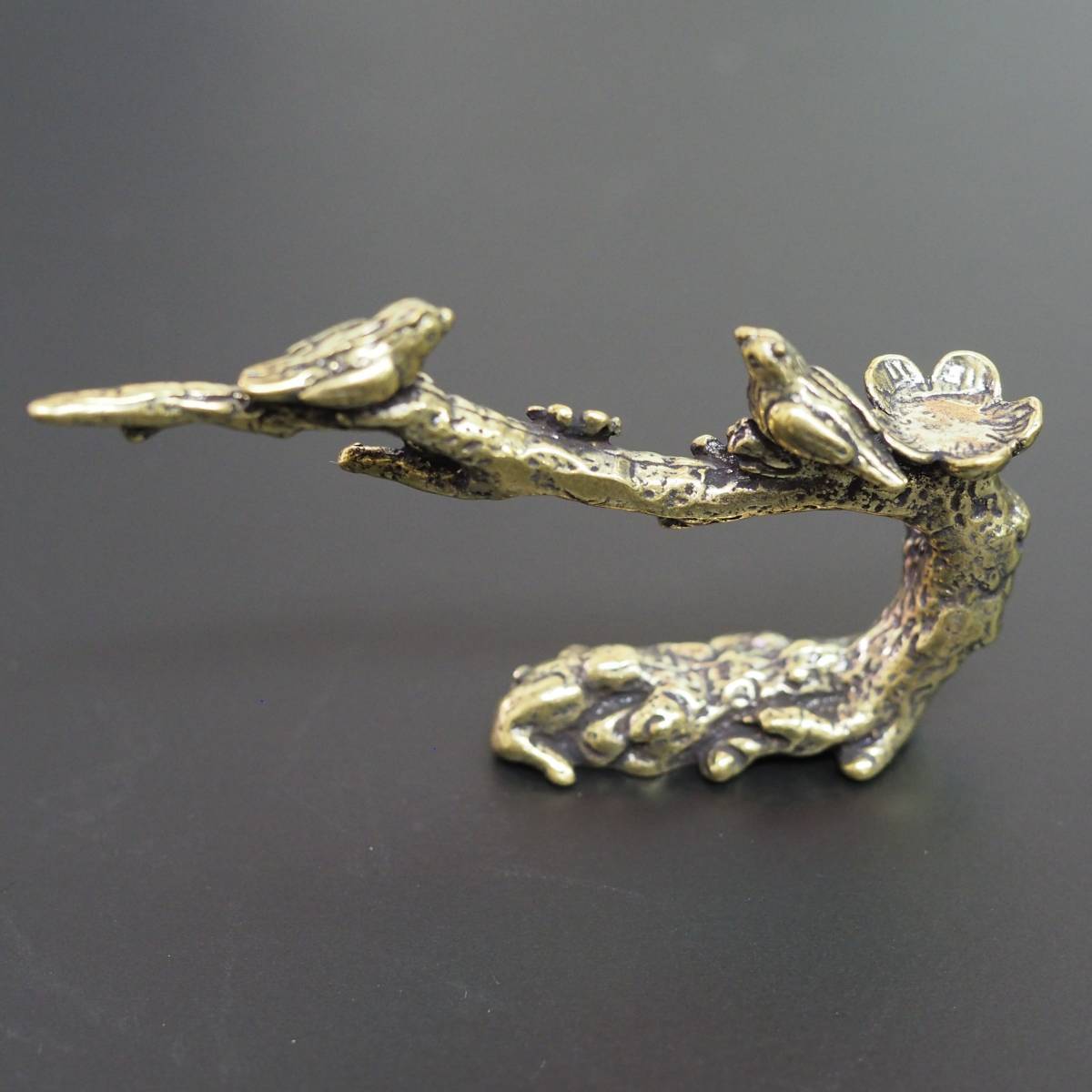 真鍮製の梅鶯の盆栽の置物です。重さは約64gです。
