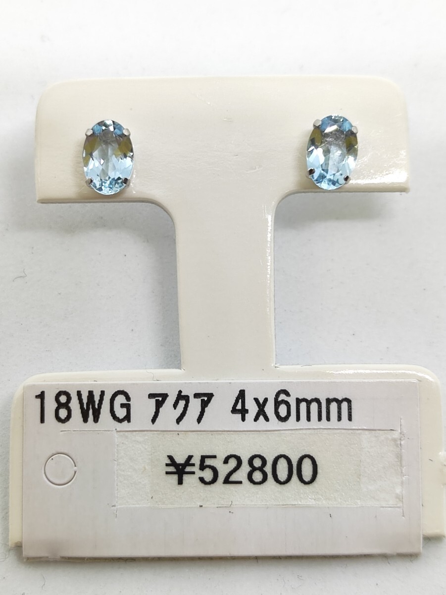 アクアマリンが片方に1石、4.0mm×6.0mm。
