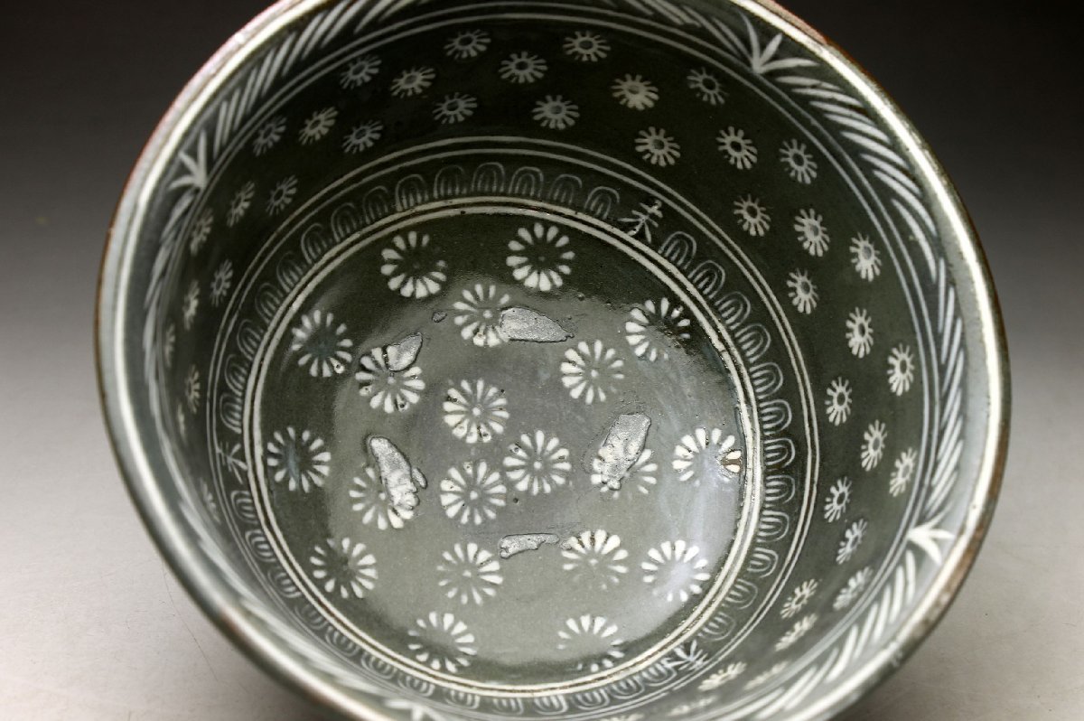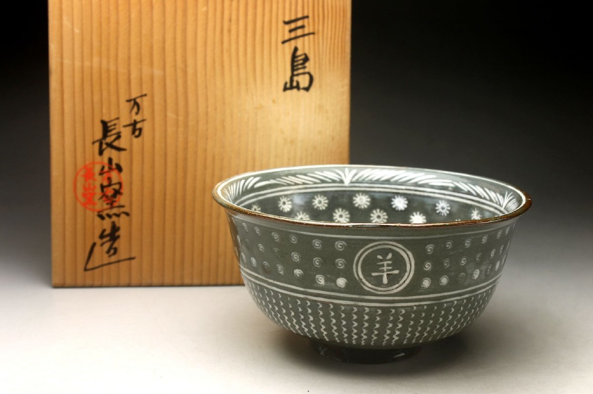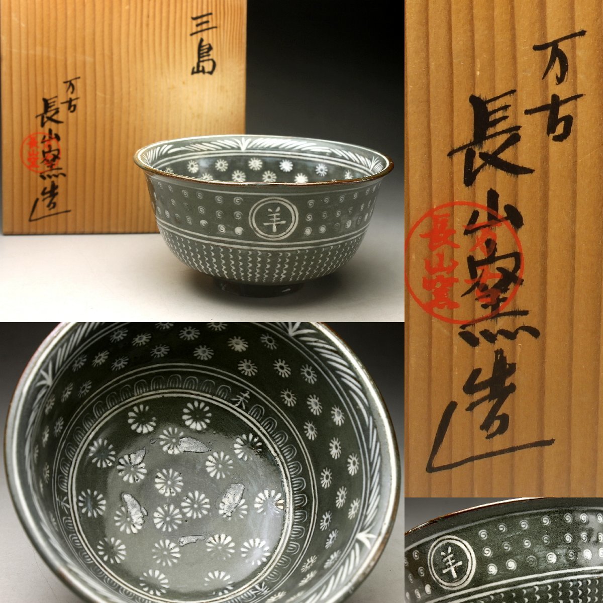 【余韻】 茶道具 万古焼 長山窯造 三島 茶碗★無傷美品 共箱<同梱可>