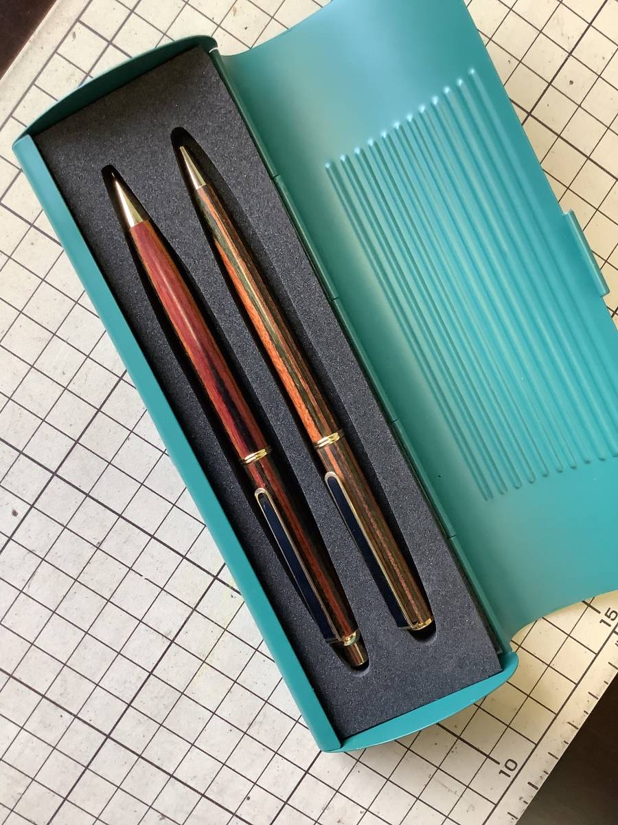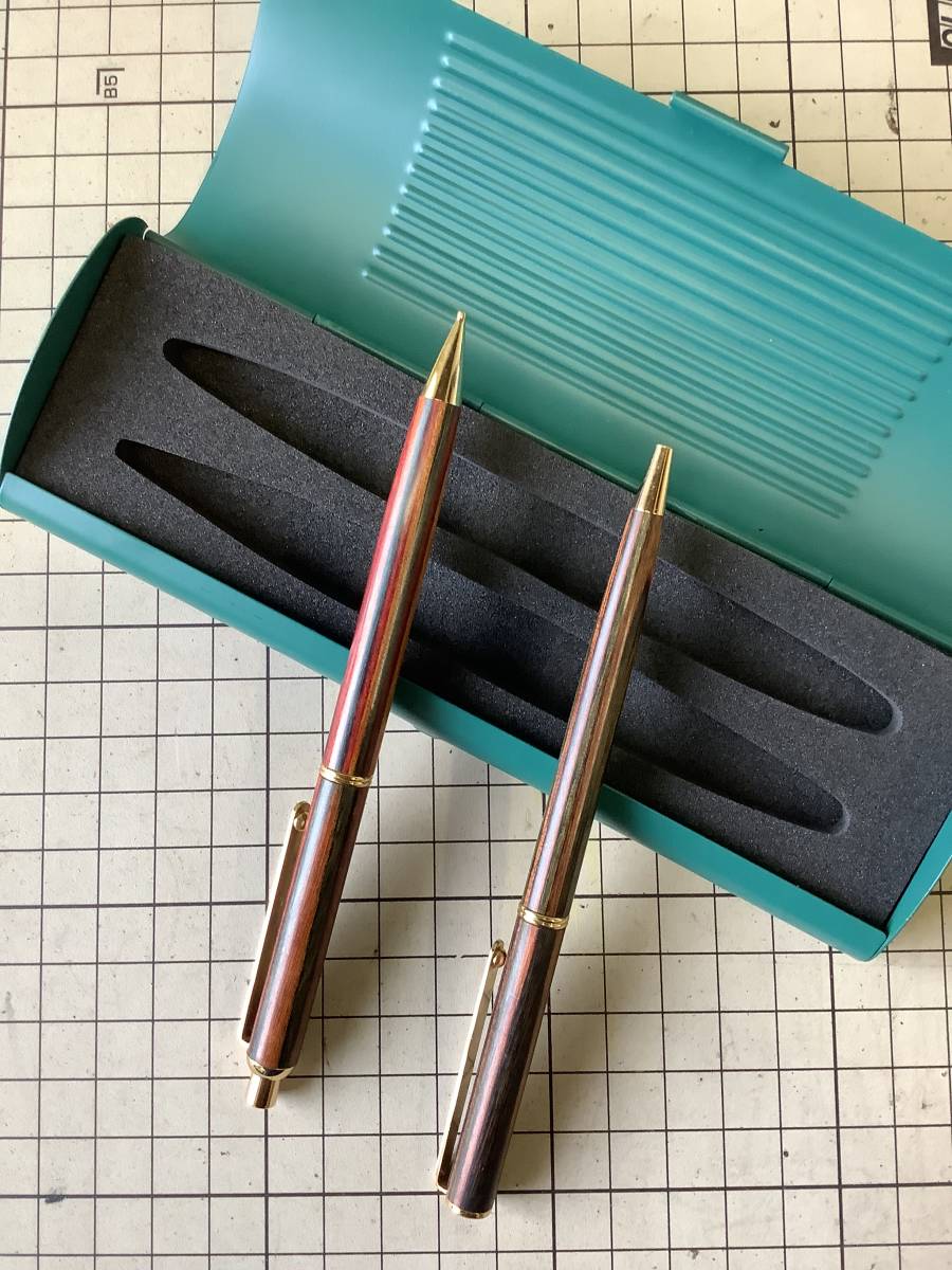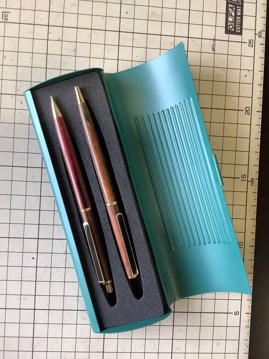 イタリア製かラーウッドをボディにしたシャープペンシルとボールペンのセットです☆ 写真のケースに入れてお送りします☆ お早目にどうぞ☆