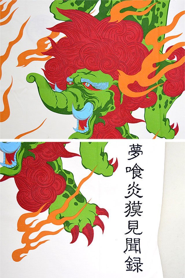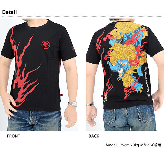 「参丸一」さんから「夢喰炎獏見聞録半袖Tシャツ(ST-89010)」のご紹介です。 今回は獏をモチーフにした珍しいデザイン。 彩り鮮やかで、夏のコーディネートのアクセントにぴったりの半袖Tシャツです。 フロント左胸の「夢」と蛙、背中の「夢喰炎獏見聞録」は刺繍でデザイン。 左袖にはブランドの頭文字の布タグを縫い付けました。 ボディーには、柔らかな肌触りでありながらも刺繍に負けないコシのある綿100%のTシャツ生地を採用しています。 | |||||||||||||||||||||||||